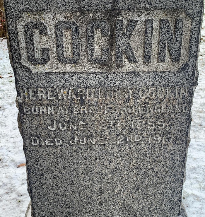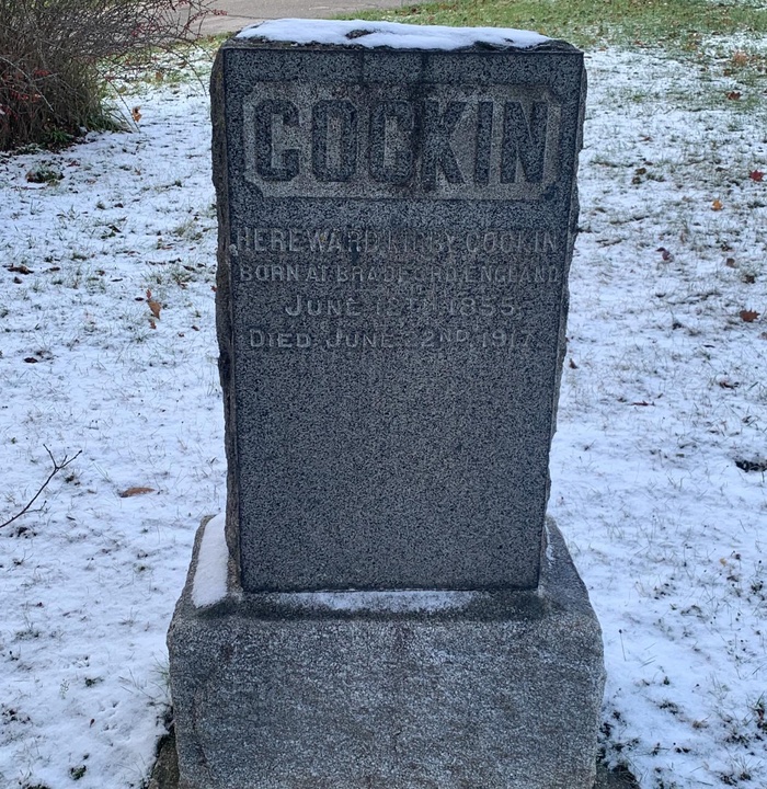 Poet, Hereward Cockin, was born June 12, 1855, in Bradford, England. He died June 22, 1917, in Guelph, Ontario. He is buried in Woodlawn Cemetery, in Guelph, Ontario.